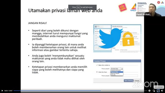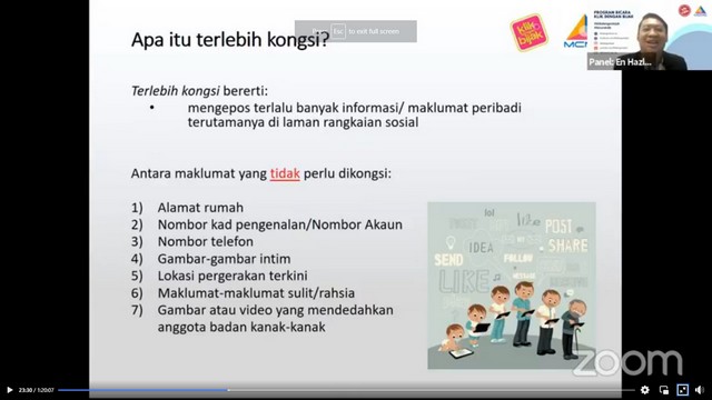 Program ini merupakan anjuran MCMC iaitu Suruhanjaya Komunikasi dan Multimedia Malaysia . Speaker utama bagi program ini adalah Encik Hazlami Othman bersama moderator iaitu Ts. Md Tahir Musa. Beliau telah menekankan beberapa topik penting semasa talk berkenaan iaitu seperti apa itu risiko dalam talian semasa melayari internet, terlebih kongsi atau oversharing yang sering dilakukan oleh pengguna media sosial, tip kawal selia kendiri semasa melayari internet dan sebagainya.