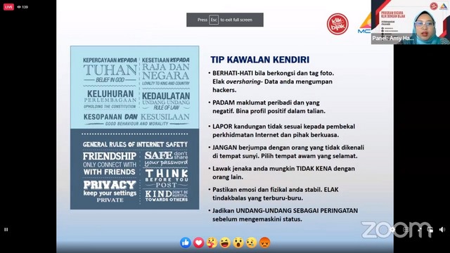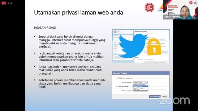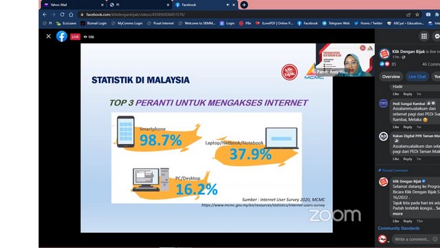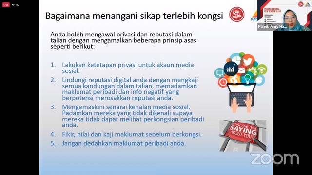 29 Julai 2022 | Aktiviti Terkini28 Julai 2022, Khamis – Staff PEDi Presint 9 Fasa 3 telah mengikuti Program Bicara Klik Dengan Bijak Siri 16/2022- Padah Terlebih Kongsi. Program ini telah diadakan secara maya di Facebook Klik Dengan Bijak. Moderator untuk program ini ialah Ts Md Tahir Musa, Timbalan Pengarah Jabatan Program Komuniti, MCMC. Manakala penceramah pula ialah Puan Amy Harlina Amran, Penolong Pengarah Pejabat MCMC Negeri Selangor.