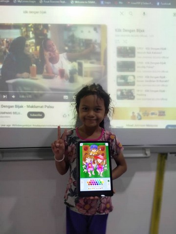 Pada permulaan sesi latihan, peserta ditayangkan video “Klik Dengan Bijak” supaya dapat memberi kesedaran kepada mereka untuk tidak berkongsi tempat tinggal di media sosial ketika berada keseorangan di dalam rumah.Seterusnya, latihan diteruskan dengan menggunakan tab.Peserta diminta untuk mewarna lukisan digital menggunakan tab yang diberikan oleh staf PEDi.Selepas itu,mereka perlu membentang hasil lukisan warna masing-masing dihadapan peserta.
