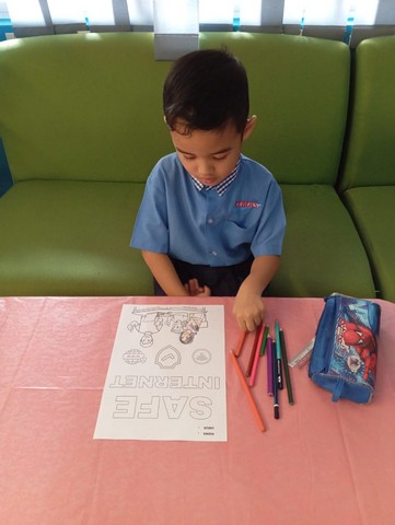 Kelas dimulakan dengan sesi pertandingan mewarna poster yang berkaitan dengan kesedaran Safe & Shield.