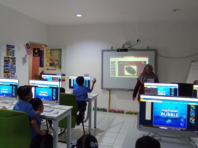 Kelas dimulakan dengan sesi pengenalan asas Komputer, belajar lebih bijak menggunakan aplikasi ABCya dan Senamrobik.