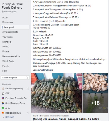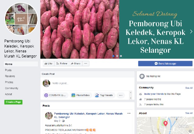 Bermulanya PKP, rakyat disarankan untuk duduk dirumah tanpa perlu kemana-mana kecuali untuk urusan penting seperti ke klinik dan membeli barang keperluan sahaja. Oleh itu, ramai peniaga kecil terjejas pendapatan ketika wabak ini melanda. Namun, usahawan Pusat Internet Presint 9 Fasa 3 ini telah mengambil langkah proaktif ketika wabak ini dengan menjadi pemborong ubi keledek dan keropok lekor semasa PKP berlangsung.