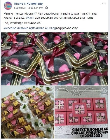Pn Shaliza merupakan usahawan makanan berasakan coklat dan sudah menceburi pernigaan ini selama 2 tahun selepas mengikuti kursus membuat coklat di Shah Alam. Kemudian berjinak jinak mengambil sedikit tempahan dari kawan kawan terdekat untuk menambah pendapatan sampingan. Dari situ beliau berani terima menerima tempahan dari orang luar. Kebanyakan pelanggan adalah dari hasil beliau menpromosikan pernigaan beliau menggunakan platform facebook. Antara tempahan yang beliau ambil adalah untuk harijadi, pertunangan, doorgift perkahwinan dan sebagainya.