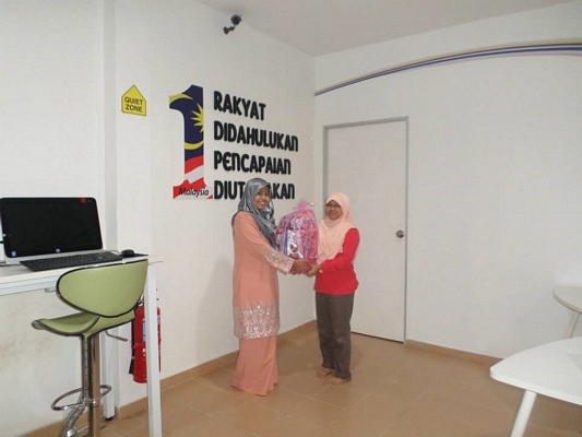 Kelas Keusahawanan Intel & Kelas Dekorasi Kek Cawan ini diakhiri dengan sesi penyampaian hadiah oleh Pengurus Pusat Internet 1 Malaysia Presint 9 Fasa 3 kepada para peserta.
